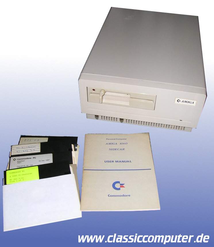 Das seltene Sidecar 1060 zum Amiga 1000, eine Entwicklung aus Braunschweig. Ein kompletter PC auf XT Basis. Die komplette PC Logik steckt in der kleinen Box, ein 5,25 Zoll Diskdrive sowie 3 ISA Steckplätze sind darin untergebracht. Ein witziges Feature, läuft doch die Grafikausgabe über den Amiga. Ein PC in einem Fenster laufen zu lassen war kein Problem. Die Geschwindigkeit ist ein anderes Thema. |