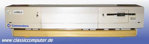 Die Urversion des Amiga, später auch bekannt als Amiga 1000. Ein Computer mit damals unvorstellbarer Leistung, ermöglicht der ein geniales Konzept das viele Spezial Chips (Chipsatz) den Prozessor entlasten. Die neuen Chips Denise, Agnus und Paula waren fleißige Helfer der CPU. Sie übernahmen Grafik, Sound und Speicherverwaltung und entlasteten so die 16 Bit CPU. Mit 256 KB war der Computer für heutige Verhältnisse extrem spärlich ausgestattet, aber es gab bald Speichererweiterungen. Viele Berühmtheiten waren von diesem Computer angetan und es tat sich für einige eine neue Tür auf, der Begriff Multimedia. Noch nie gab es eine solche Bild und Tonqualität in einem Heimcomputer. Auch das Multitasking war neu, mehrere Programme liefen gleichzeitig. Heute selbstverständlich. Das Betriebssystem, beim Amiga die Workbench, setzte auf das Kickstart auf. Eine Art BIOS, welches beim A 1000 noch von Diskette geladen werden musste. Da war Diskettenwechseln angesagt, erst Kickstart Disk rein, dann die Workbench. Jetzt erst konnte man loslegen, das Basic erlaubte sogar die Sprachausgabe am Amiga. Heute recht amüsant, damals sensationell. Das Kickstart nicht in einem Eprom zu speichern (wie bei späteren Amiga) war eine gute Idee, konnte doch so schnell und einfach ein neues Kick gestartet werden. Später musste dazu immer das Eprom gewechselt werden. So ist der Amiga für 2 Jahre auch das Aushängeschild von Commodore geworden bis 1087 der A 500 und A 2000 die "Freundin" ablösten. Heute recht selten. Dieses Gerät ist verbastelt, ein Bootselector sowie ein Schalter für die Speichererweiterung sind angebracht. Da das ganze Gehäuse aus Plastik besteht sind solche Umbauten einfach vorzunehmen. |