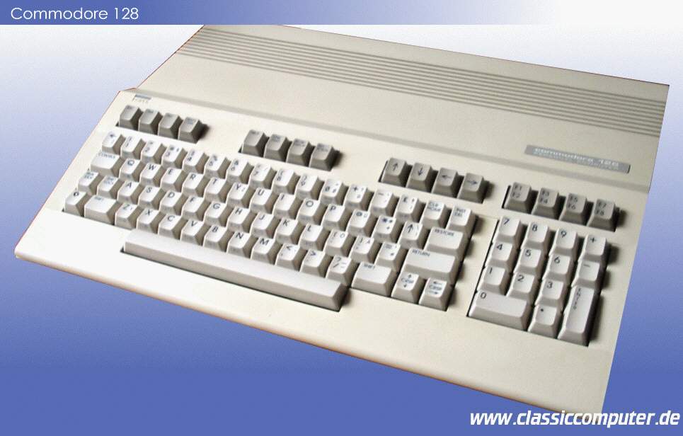 | Der 128 sollte die Produktreihe von Commodore ergänzen. Neben dem 64er sollte er auch für ernsthafte Anwendungen gedacht sein. 80 Zeichen, CP/M Betriebssystem, neues Basic und gleich 2 Prozessoren (8502 und Z 80) sind in diesem flachen Gehäuse untergebracht. Ein absolut C 64 kompatibler Modus wurde ihm ebenfalls eingebaut, damit man auch die alte Software weiterhin einsetzen konnte. Allerdings war der 64 Modus genau so langsam und die Software Entwickler nutzten den 128 Modus nicht aus. Daher war der 128er kein Riesen Erfolg und überlebte den C 64 nicht. | |
