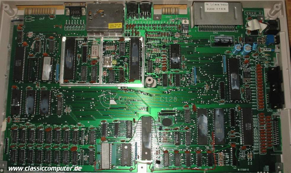 | Der 128 strotzt innen nur so mit Platz auf der Platine. Bei genauerer Betrachtung stellt man fest das diese Platine vor dem C 64 II entwickelt worden ist, so wird der Prozessor 8502 auch bald danach im C 64 II eingesetzt. Eine genauere Beschriftung der einzelnen Bauteile konnte noch nicht erfolgen, wird aber bald nachgeholt. |