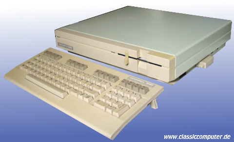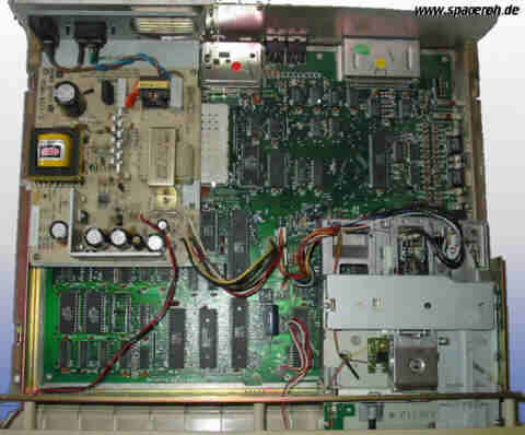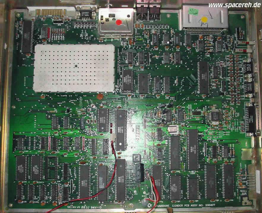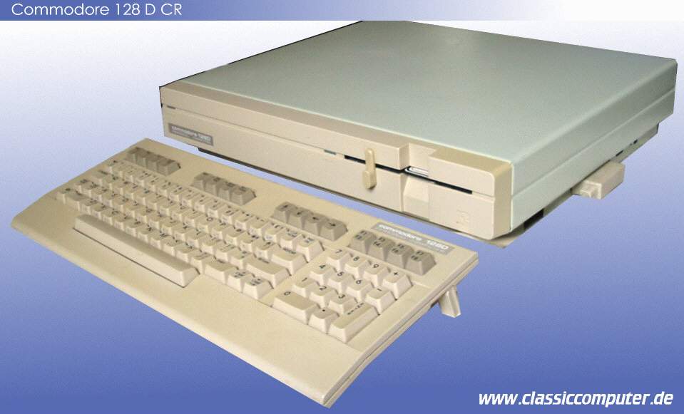 | Der 128 D ist eine Kombination vom 128 und der 1571. Die Tastatur ist abgesetzt, die Floppy und der Computer sind in einem Gehäuse untergebracht. Dieses Gehäuse gibt es in einer Kunststoff Version, bei der man die Tastatur zum Transport unterklemmen konnte. Diese Kunststoff Version beinhaltet das Computer Board und das Floppy Board getrennt. Oder halt die hier gezeigte Metall Version (Zusatz CR= Cost reduced). Computer Board und Floppy Board bilden hier eine Einheit, aber ansonsten absolut kompatibel zum 128 und C 64. | |