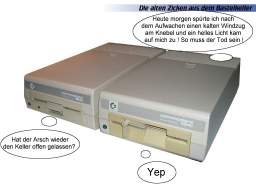 Was passiert wenn man zuviel Zeit in seinem Keller verbringt und dort alte Computer sammelt? Man sieht Floppys sprechen: