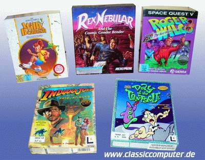 umfangreiche Spiele wie Maniac Mansion, Mystery House und Zak McKraken