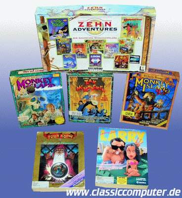 Hier eine Selection von Adventure Spiele: King´s Quest, Leisure Suit Larry, Monkey Island, Zak Mc Kraken und eine Sammelbox mit den 10 bekanntesten Lucasarts Spielen. |