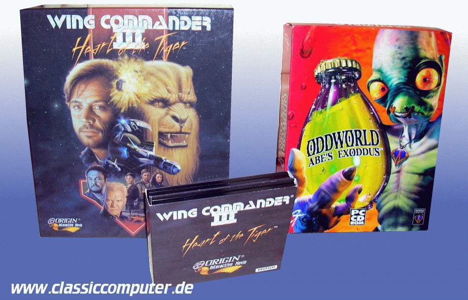 Hier Wing Commander 3 und daneben Oddworld : Abe´s Exodus, die abgedrehte Jump´n Run Serie von Lorne Lanning. |