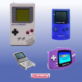 Varianten, der erste Gameboy oben links, daneben der Gameboy Color mit